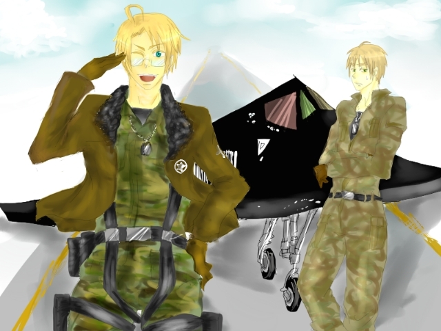 アルはHALO降下出来そうな格好。イギイギはデザート迷彩のツナギで整備士みたいな格好。